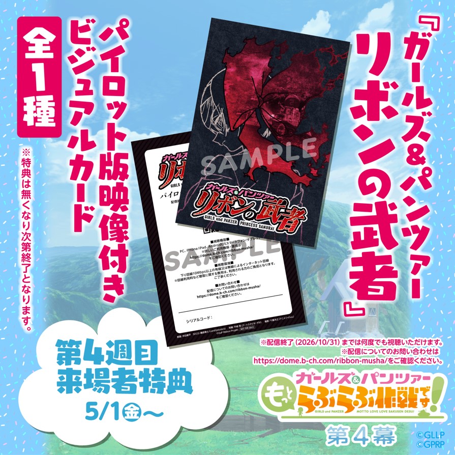 『ガールズパンツァー もっとらぶらぶ作戦です!』第4幕 4週目来場者特典は『ガールズパンツァー リボンの武者』パイロット版映像付きビジュアルカード!