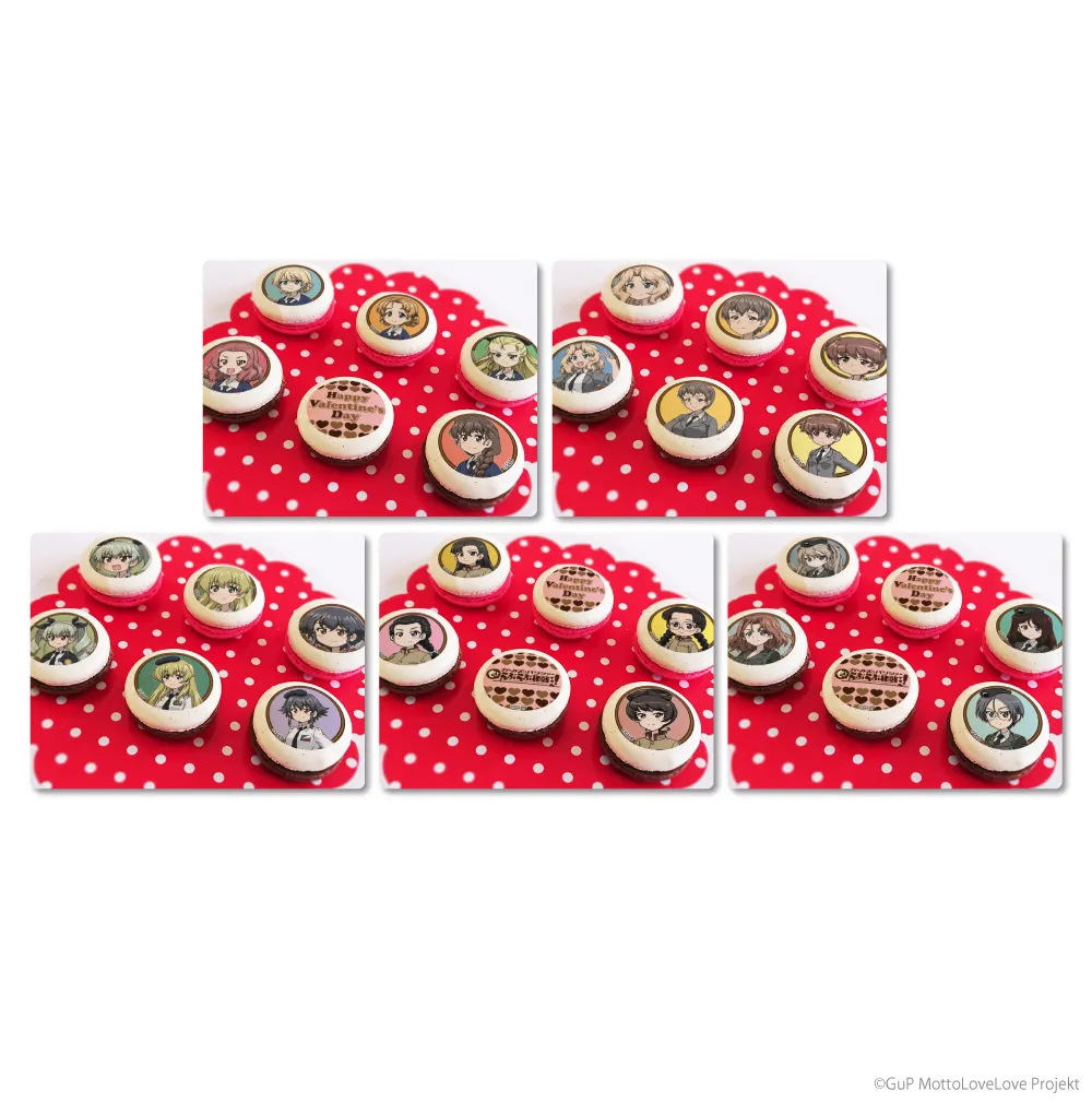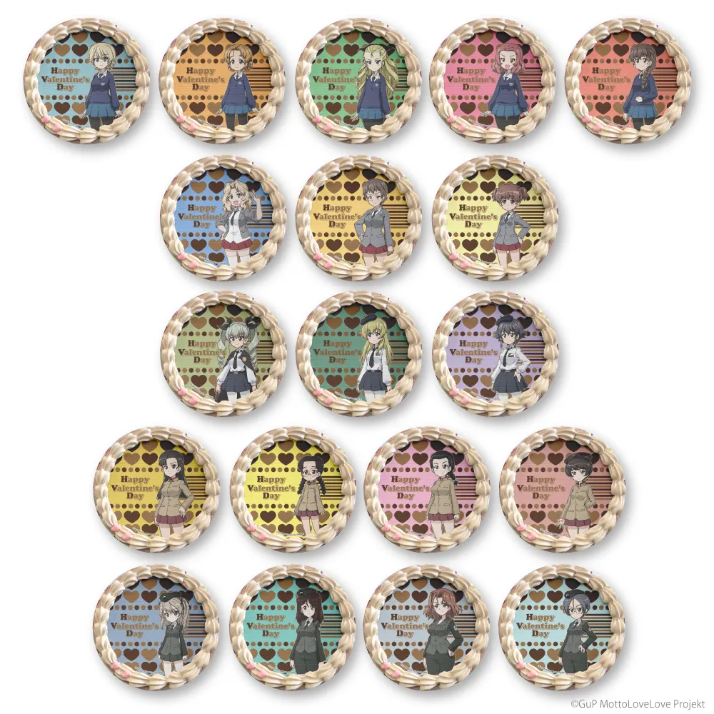 聖グロリアーナ女学院、サンダース大学付属高校、アンツィオ高校、知波単学園、大学選抜チームのメンバーが華やかなバレンタインスイーツになって登場!!