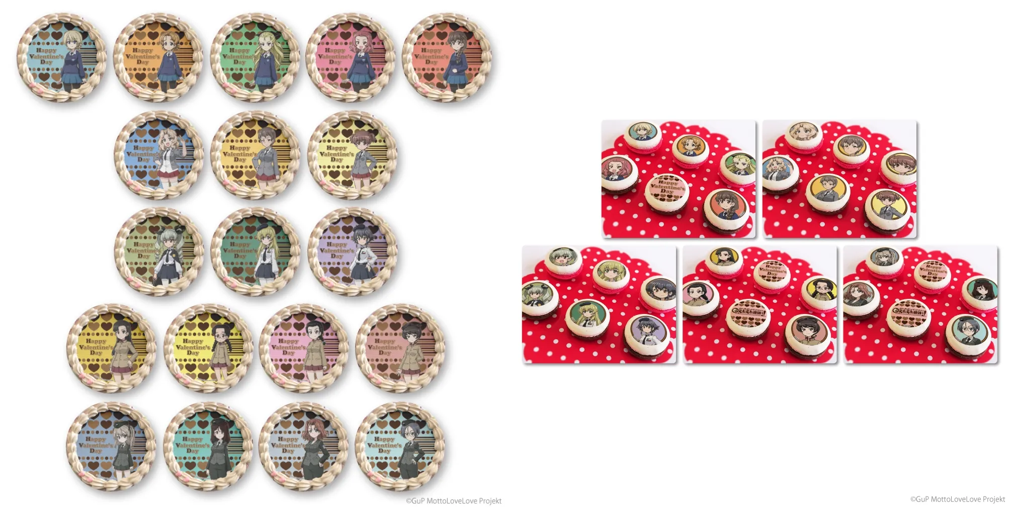 聖グロリアーナ女学院、サンダース大学付属高校、アンツィオ高校、知波単学園、大学選抜チームのメンバーが華やかなバレンタインスイーツになって登場!!